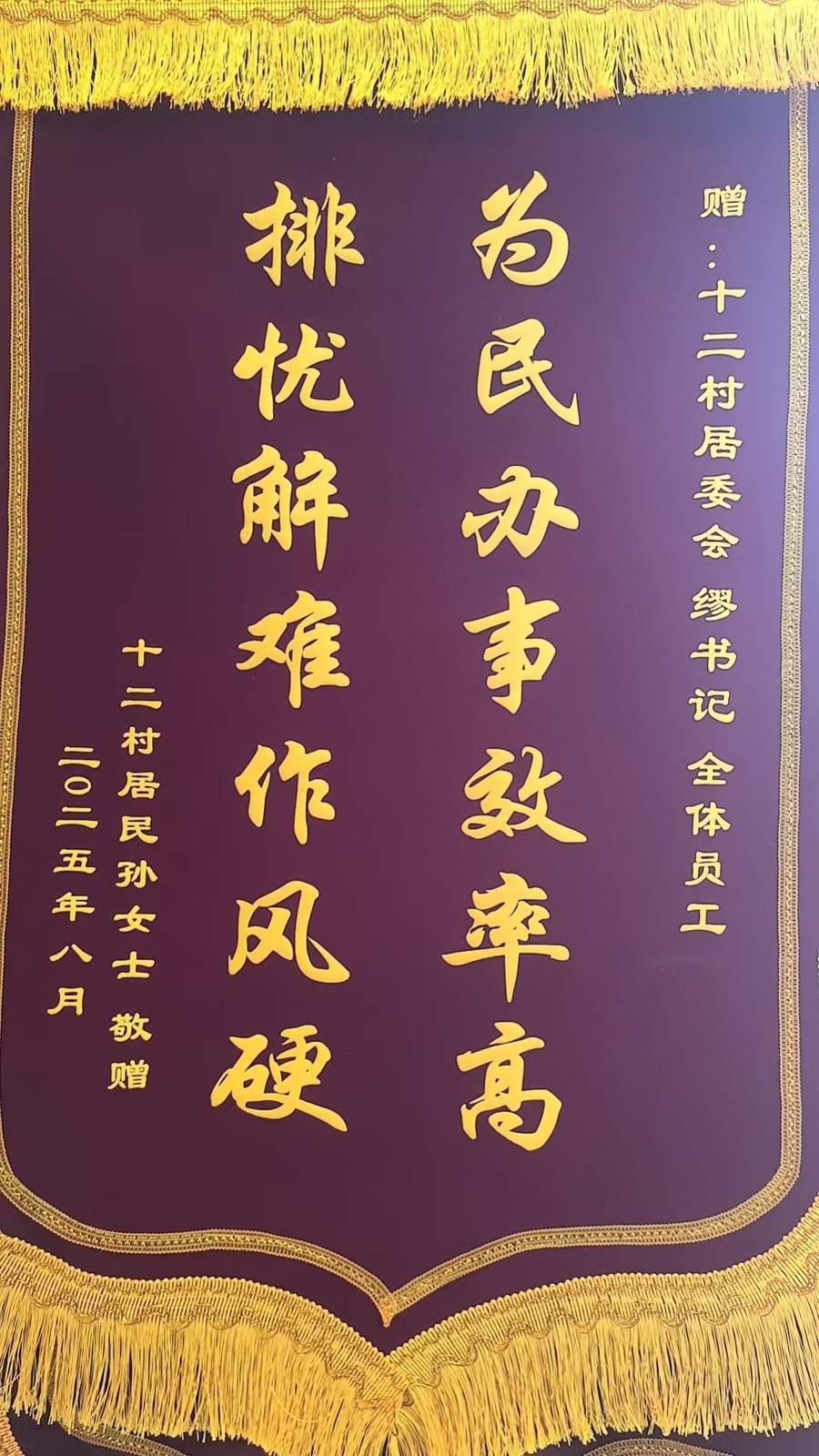 无独有偶,石化街道十二村居民孙阿姨将一面写有“为民办事效率高 排忧解难作风硬”的锦旗送至居委会,感谢工作人员彻底解决困扰她家多年的墙面渗水问题。