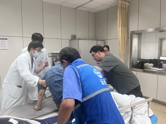 在暂时联系不上家属的情况下,桥英馨苑所属的桥园居委会迅速启动应急机制。“钱伯伯,我们陪您去。”居委会工作人员张辉红蹲在老人身边,细心为老人擦拭头部的血迹,并柔声安抚。原本执意回家的老人渐渐平静,同意前往医院。在医院里,居委会工作人员变身“临时家属”:有人全程陪护老人,及时沟通需求和病情;有人负责挂号、取送检验报告;还有人考虑到天气炎热且已过饭点,特地前往便利店购买饮用水和食物,防止老人体力不支。